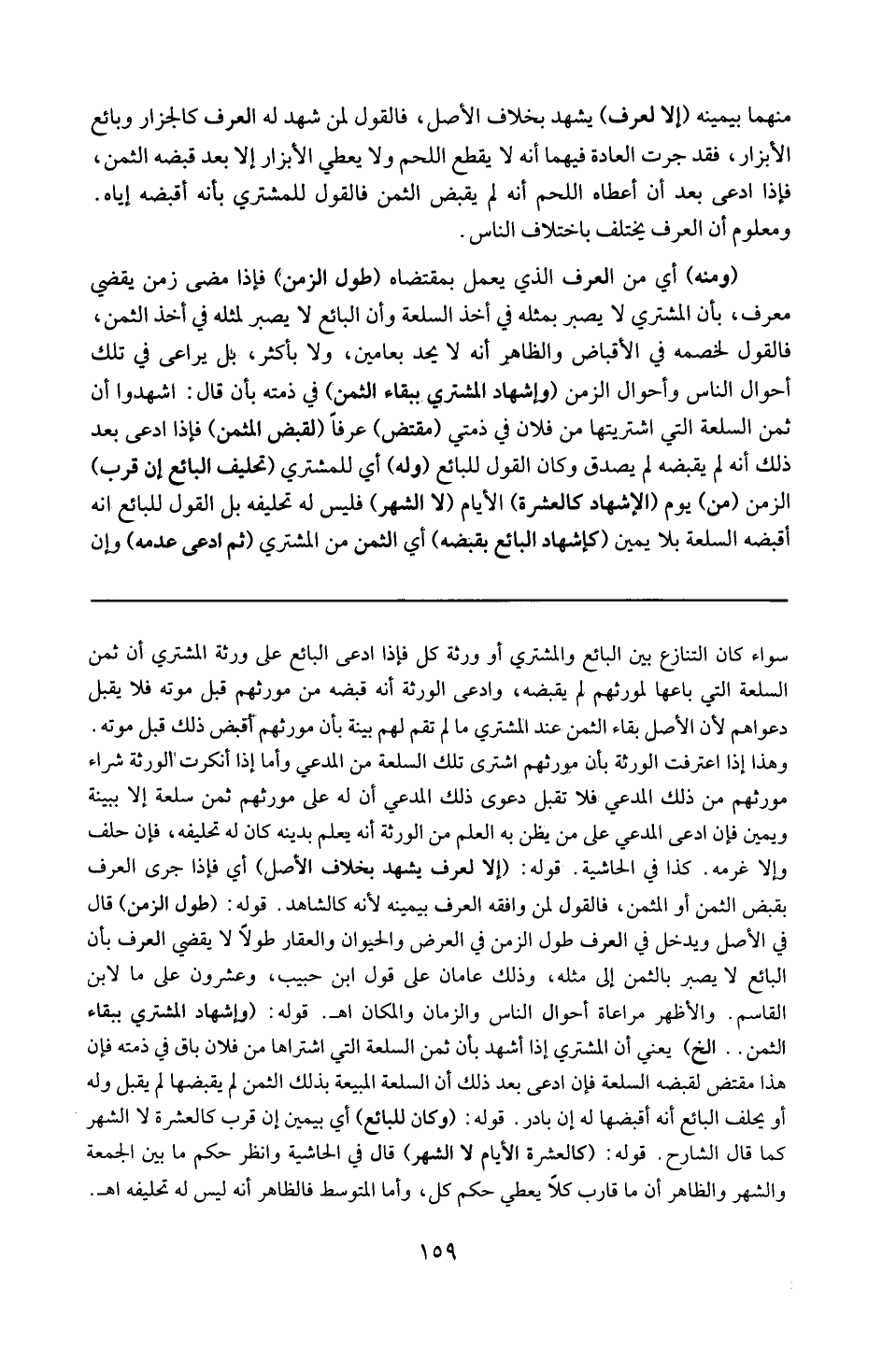 قوله : 16 ( طول الزمن ) : قال في الأصل ويدخل في العرف طول الزمن في العرض والحيوان والعقار طولا يقضي العرف بان البائع لايصبر بالثمن إلى مثله وذلك عامان على قول ابن حبيب . وعشرون على ما ل ابن القاسم ، والأظهر مراعاة أحوال الناس والزمان والمكان ( اه ) .