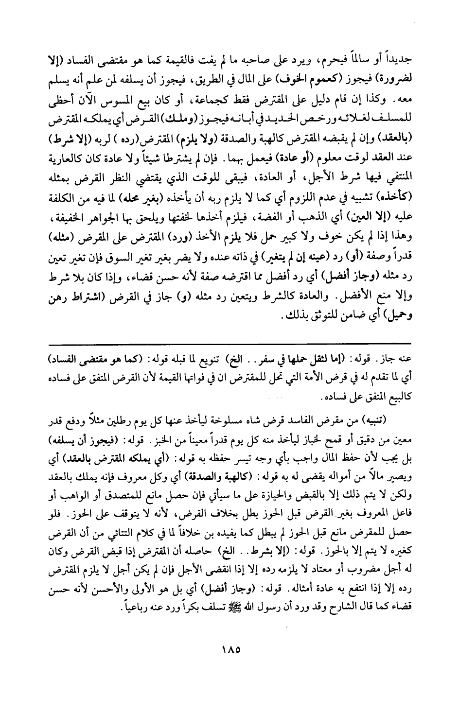 تنبيه : من القرض الفاسد قر شاة مسلوخة ليأخذ عنها كل يوم رطلين مثلاً ، ودفع قدر معين من دقيق أو قمح لخباز ليأخذ منه كل يوم قدراً معيناً من الخبز :