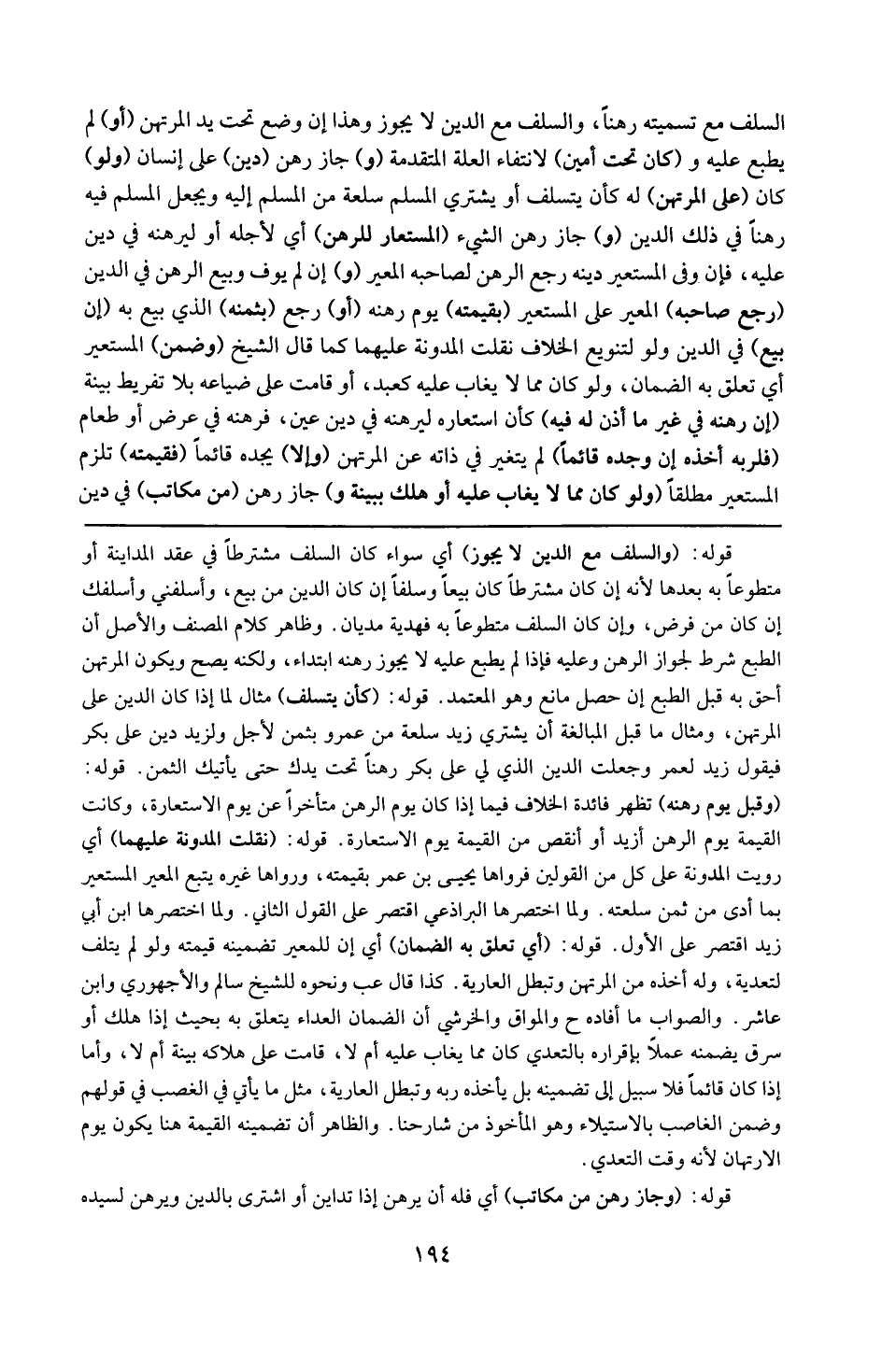 قوله : 16 ( والسلف مع الدين لا يجوز ) : أي سواء كان السلف مشترطاً في عقد المداينة أو متطوعاً به بعدها لأنه إن كان مشترطاً كان بيعاً وسلفاً إن كان الدين من بيع وأسلفني وأسلفك إن كان من قرض وإن كان السلف متطوعاً فهدية مديان : وظاهر كلام المصنف والأصل أن الطبع شرط لجواز الرهن ؛ وعليه فإذا لم يطبع عليه لا يجوز رهنه ابتداء ويكون المرتهن أحق به قبل الطبع إن حصل مانع وهو المعتمد .