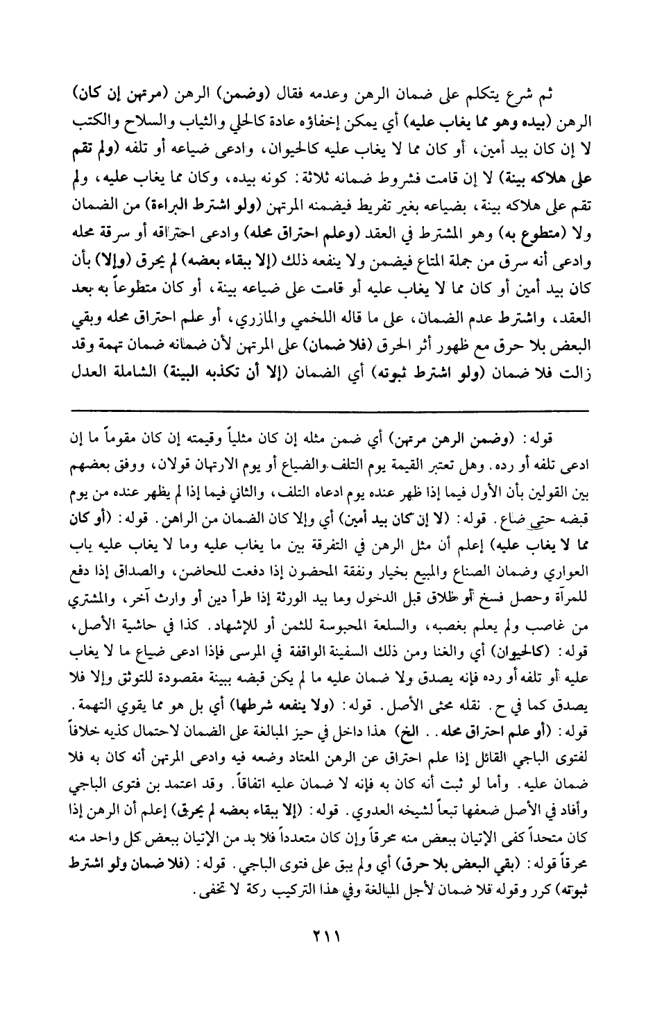 قوله : 16 ( إلا ببقاء بعضه لم يحرق ) : اعلم أن الرهن إذا كان متحداً كفى الإتيان ببعض منه محرقاً وإن كان متعدداً فلا بد من الإتيان ببعض كل واحد منه محرقاً .