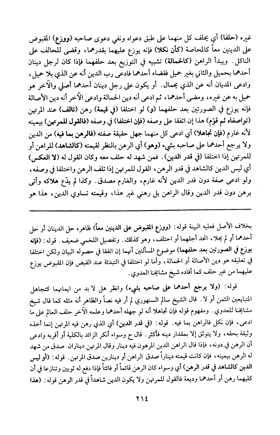 قوله : 16 ( في قدر الدين ) : أي الذي رهن فيه لأن المرتهن إنما أخذه وثيقة بحقه ولا يتوثق إلا بمقدار دينه . فأكثر قال ( ح ) : وسواء أنكر الزائد بالكلية أو أقرّ به وادعى أن الرهن في دونه فإذا قال الراهن : الدين المرهون فيه دينار ، وقال المرتهن : ديناران ، صدّق من شهد له الرهن بيمينه فإن كانت قيمته ديناراً صدق الراهن أو دينارين أو دينارين صدق المرتهن .
