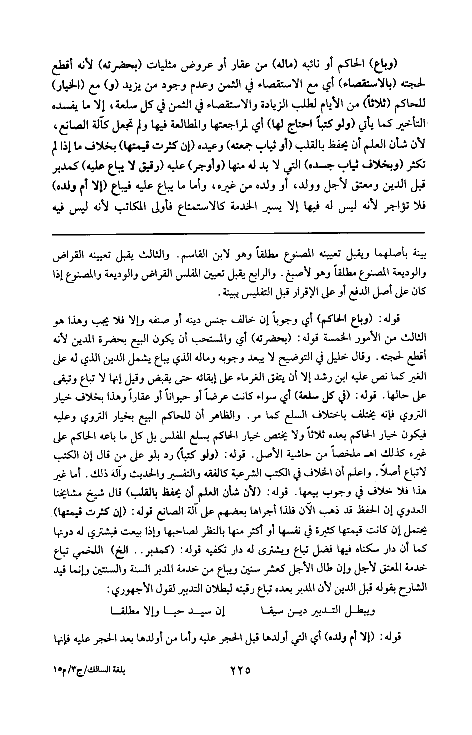 قوله : 16 ( في كل سلعة ) : أي سواء كانت عرضاً أو حيواناً أو عقاراً وهذا بخلاف خيار التروي فإنه يختلف باختلاف السلع كما مر . والظاهر أن للحاكم البيع بخيار التروي ، وعليه فيكون خيار الحاكم بعده ثلاثاً ولايختص خيار الحاكم بسلع المفلس بل كل ما باعه الحاكم على غيره ( 1 هـ . ملخصاً من حاشية الأصل ) .