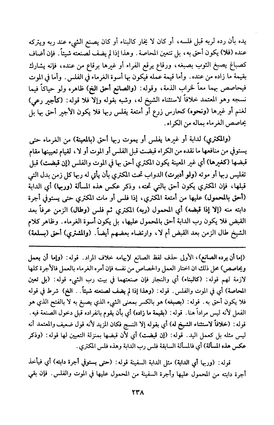 قوله : 16 ( حتى يستوفي أجرة دابته ) : أى فيأخذ أجره دابته من المحمول عليها وأجرة السفينة من الحمول عليها فى الموت والفلس ، فإن بقى