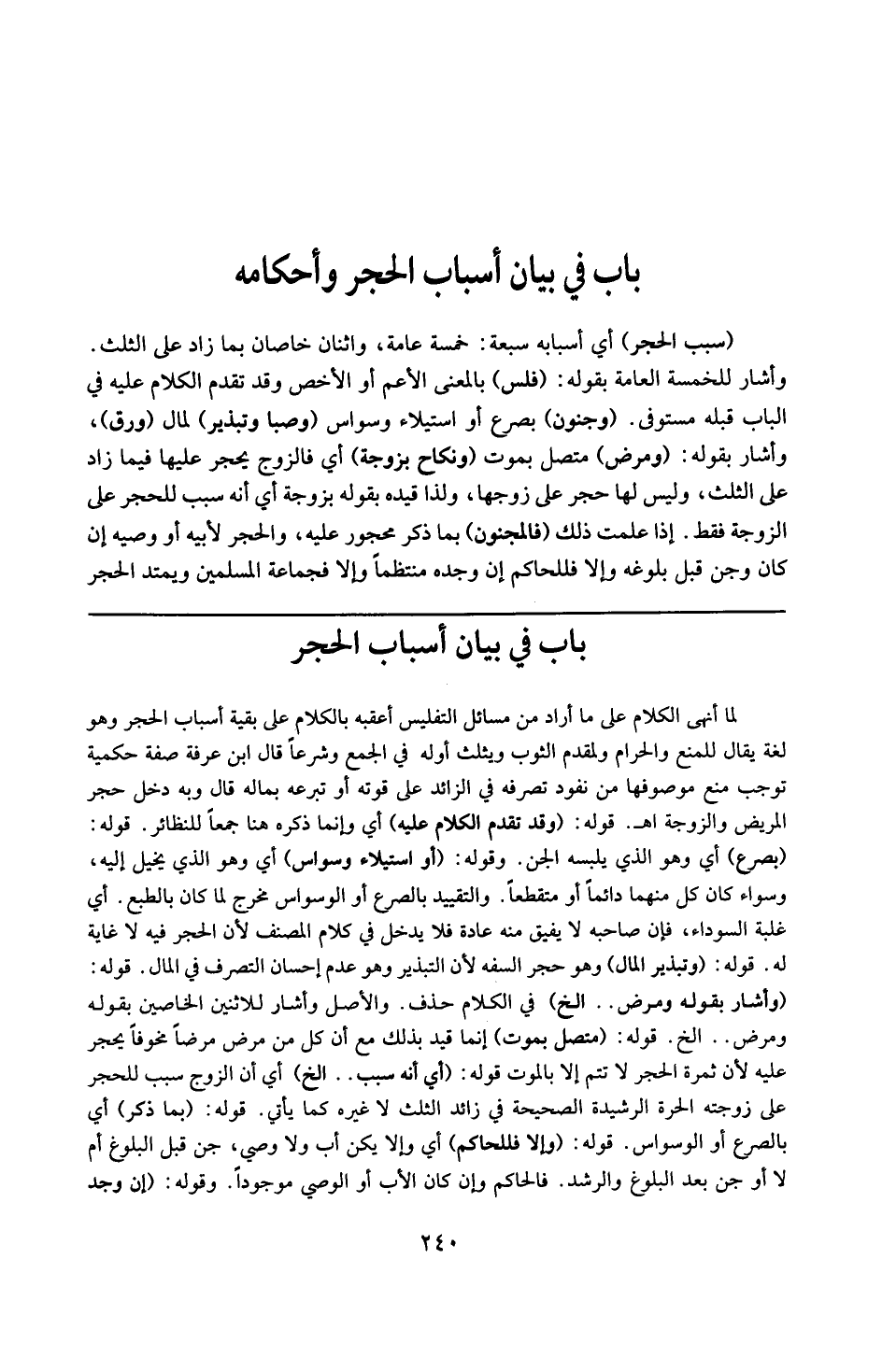 ( في بيان أسباب الحجر وأحكامه )