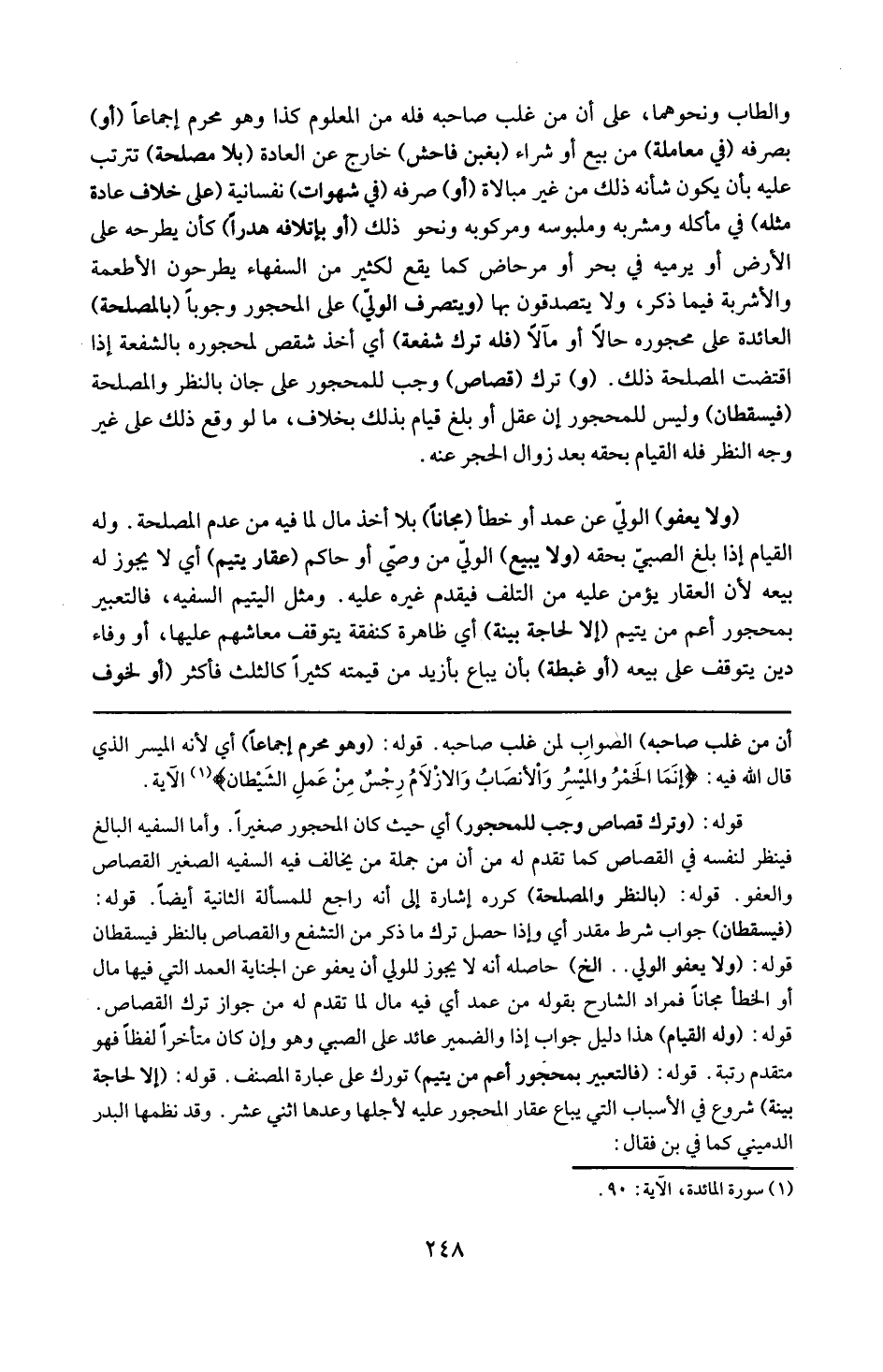 قوله : 6 ( وترك قصاص وجب للمحجور ) : أي حيث كان المحجور صغيراً ، وأما السفيه البالغ فينتظر لنفسه القصاص كما تقدم له من أن جملة ما يخالف فيه السفيه الصغير القصاص والعفو .