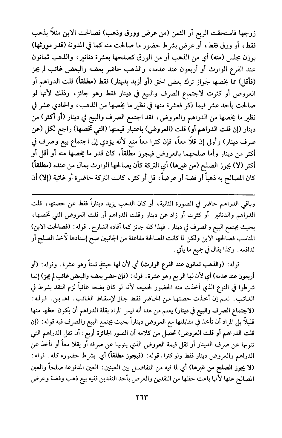 قوله : 16 ( لاجتماع الصرف والبيع في دينار ) : يعلم من هذا أنه ليس المراد بقلة الدراهم أن يكون حظها منها قليلاً ، بل المراد في مقابلتها مع العروض ديناراً بحيث يجتمع البيع والصرف فيه .