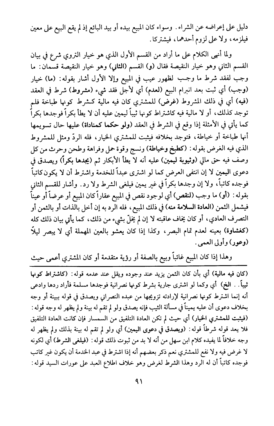 قوله : 16 ( فيلغى الشرط ) : أي لكونه لا غرض فيه ولا نفع للمشتري نعم ذكر بعضهم أنه إذا اشترط في عبد الخدمة أن يكون غير كاتب فوجده كاتباً أن له الرد وأن هذا الشرط لغرض وهو خلاف اطلاع العبد على عورات السيد .