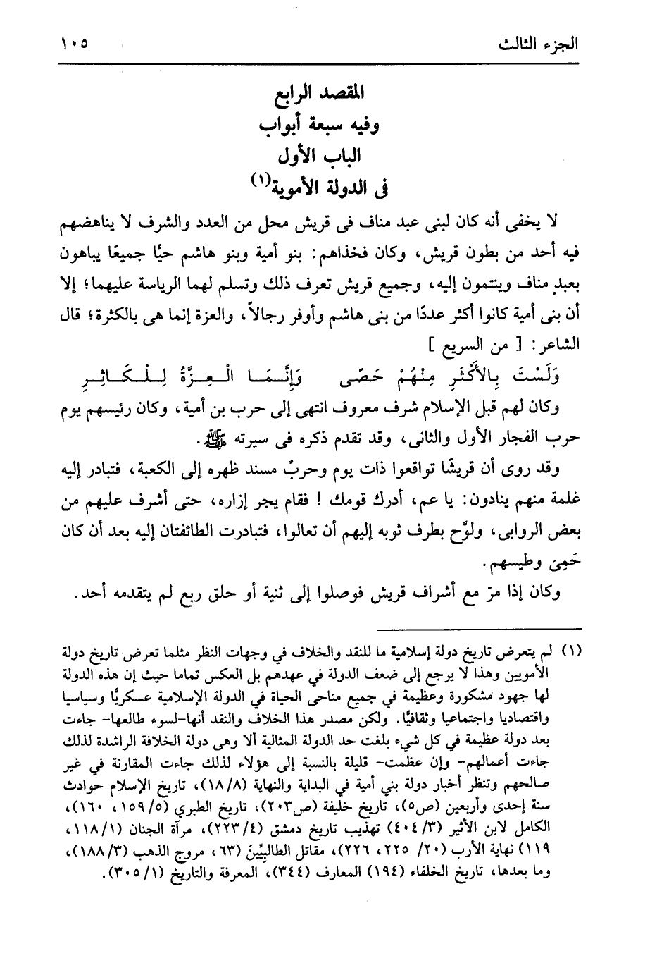 (لمقصد الرَّابِع وَفِيه سَبْعَة أَبْوَاب الْبَاب الأول فِي الدولة الأموية)