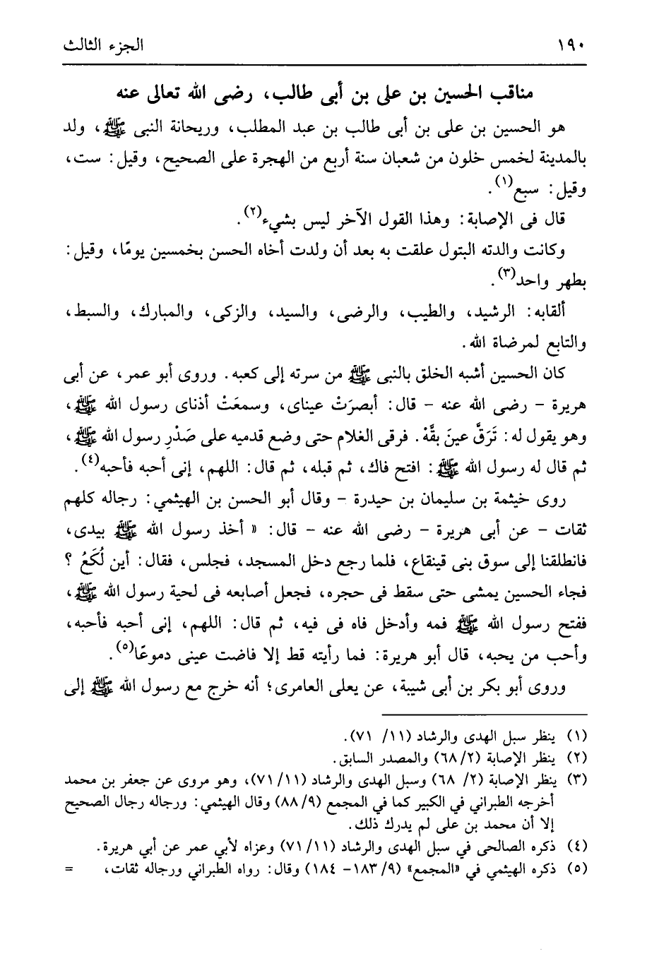 (مَنَاقِب الْحُسَيْن بن عَليّ بن أبي طَالب رَضِي الله تَعَالَى عَنهُ)