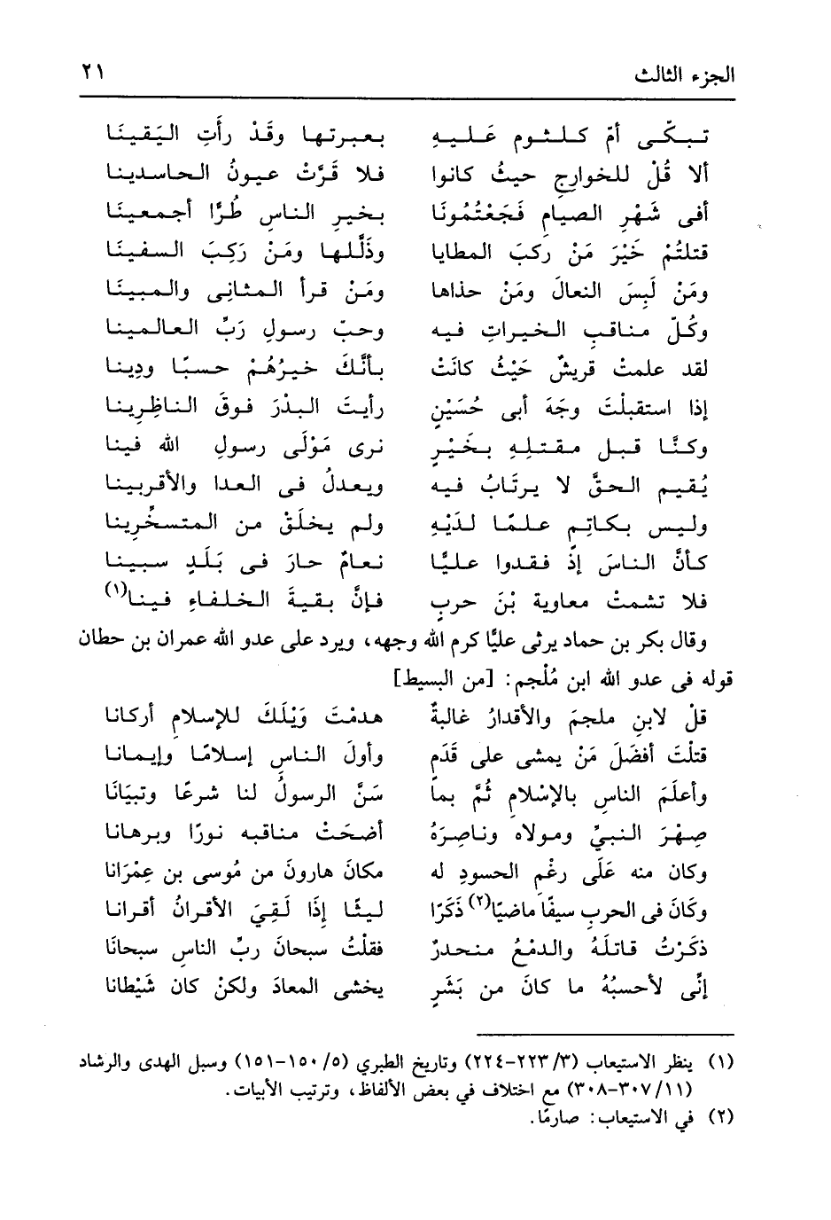 (أَلا قُلْ للخوارِجِ حيثُ كَانُوا ... فَلَا قَرَّتْ عيونُ الحاسدينا)