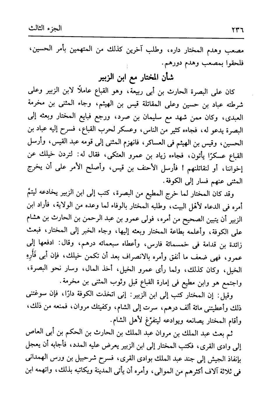 مُصعب وَهدم الْمُخْتَار دَاره وَطلب آخَرين كَذَلِك من المتهمين بِأَمْر الْحُسَيْن فَلَحقُوا بمصعب وَهدم دُورهمْ