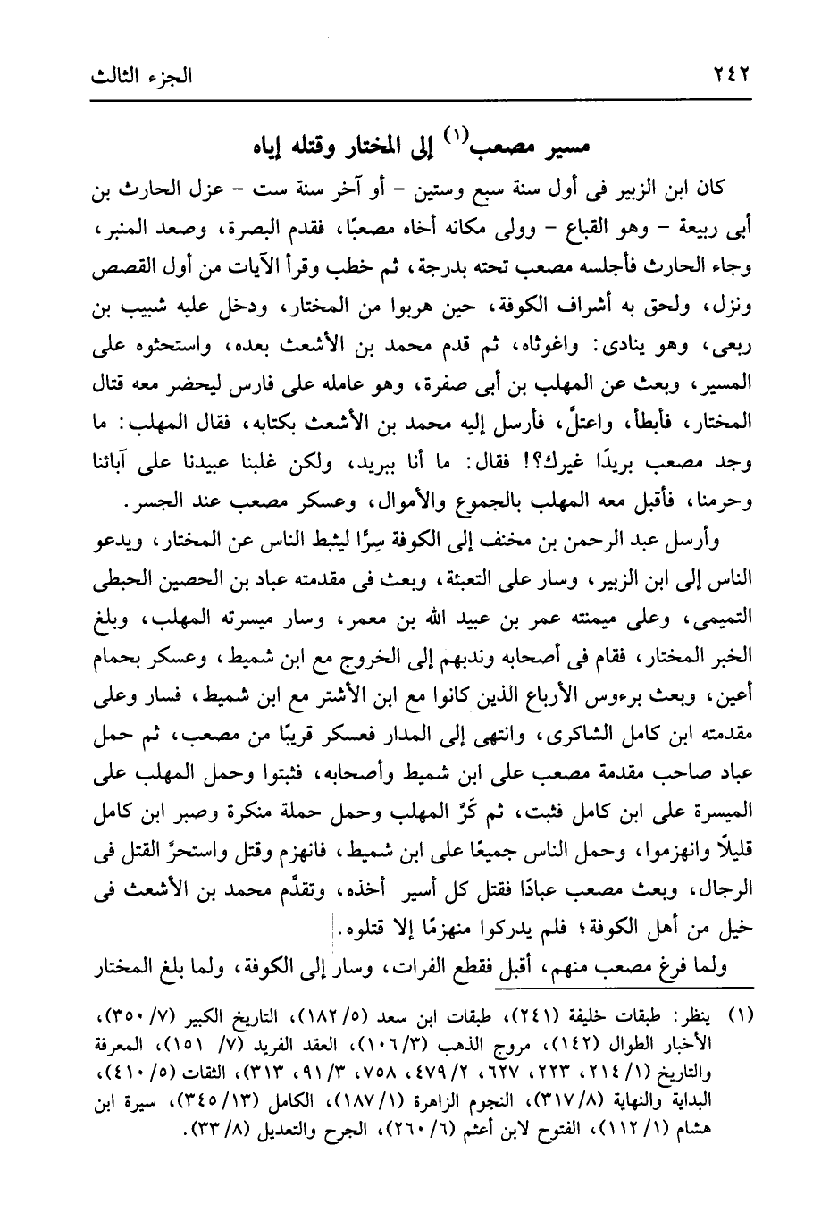 (مسيرَة مُصعب إِلى الْمُخْتَار وَقَتله إِيَّاه)