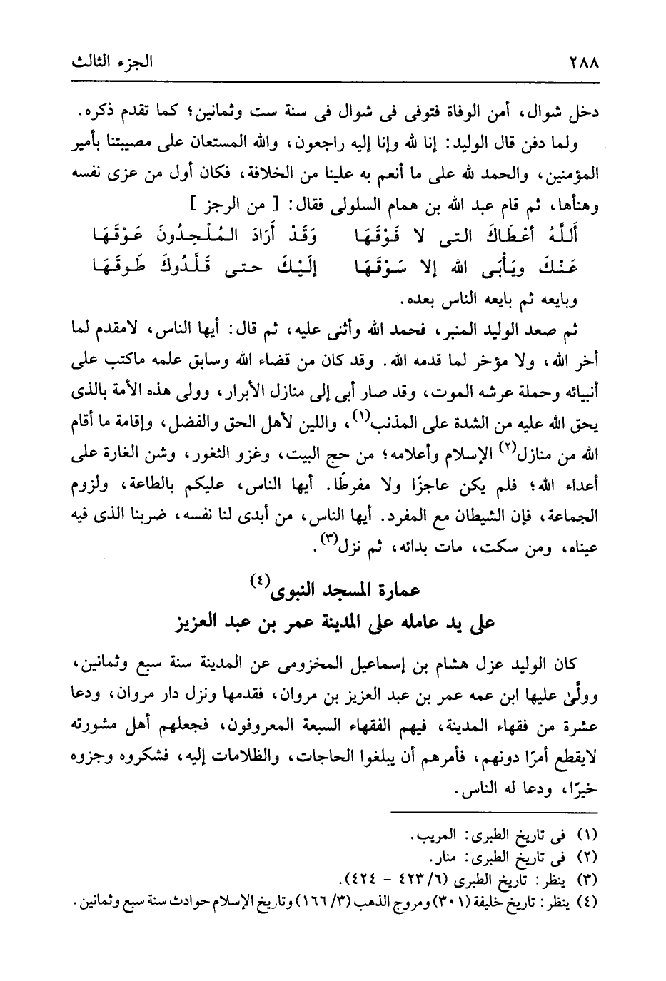 (عمَارَة الْمَسْجِد النَّبَوِيّ على يَد عَامله على الْمَدِينَة عمر بن عبد الْعَزِيز)