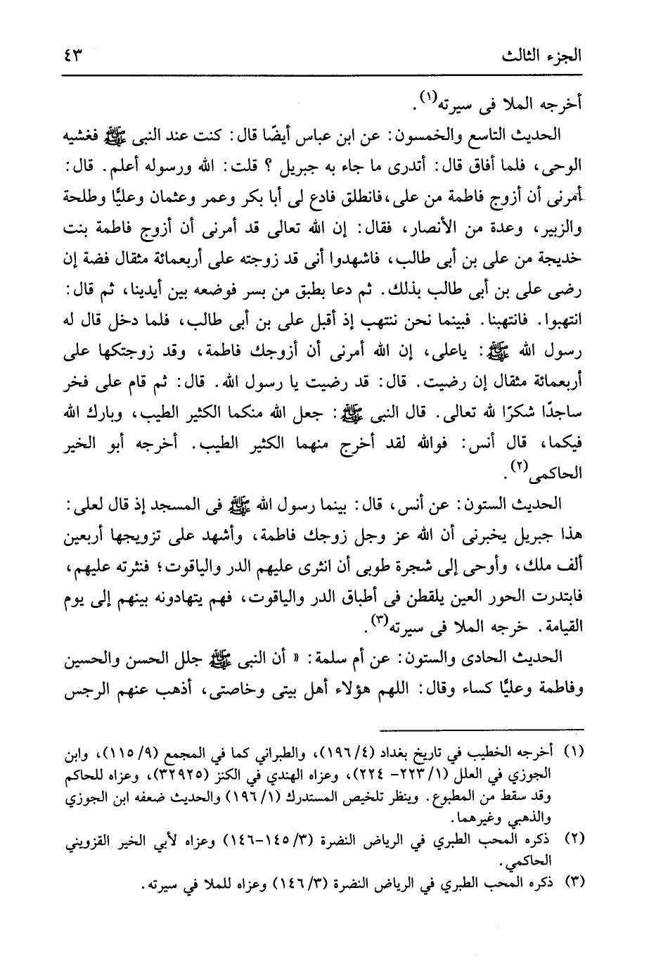 أخرجه الملا فِي سيرته الحَدِيث التَّاسِع وَالْخَمْسُونَ