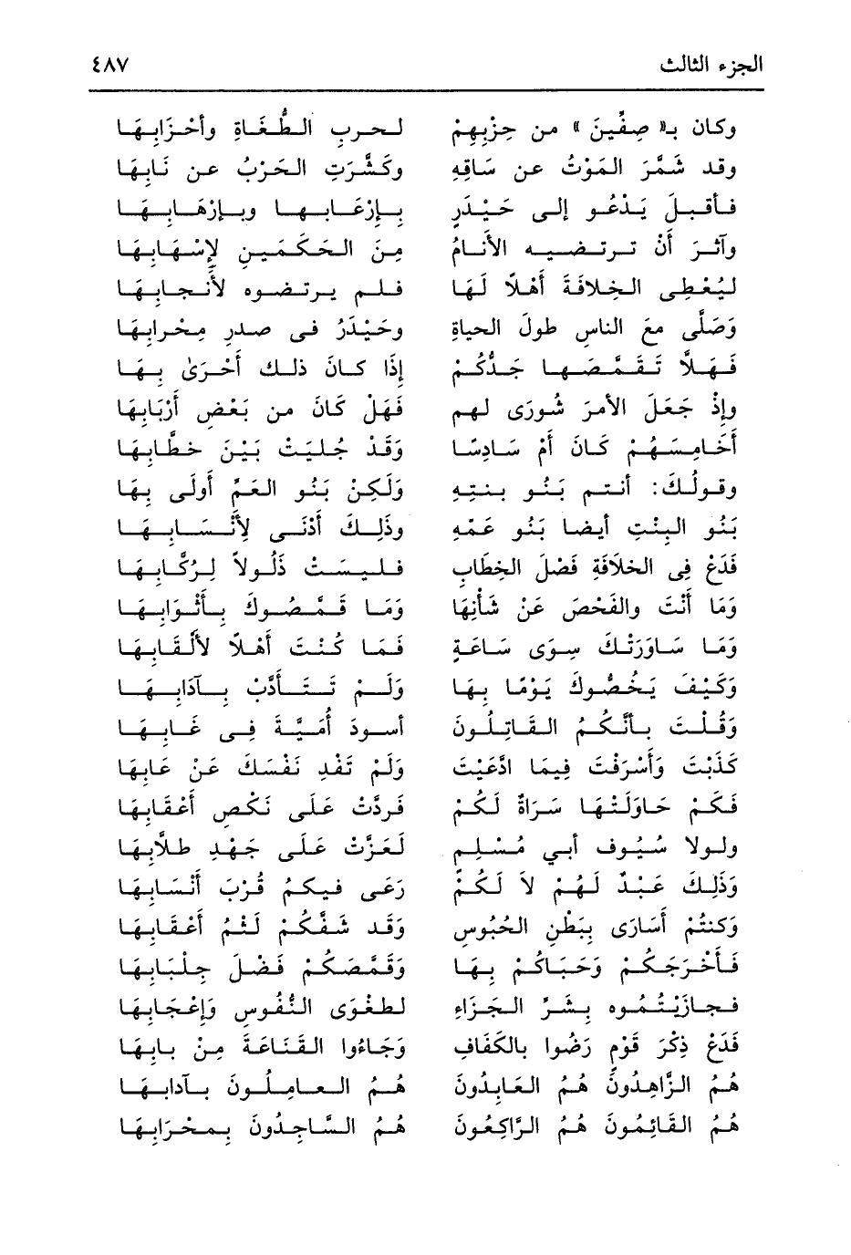 (وَكَانَ ب صِفِّينَ من حِزْبِهِمْ ... لحربِ الطُّغَاةِ وأحْزَابِهَا)