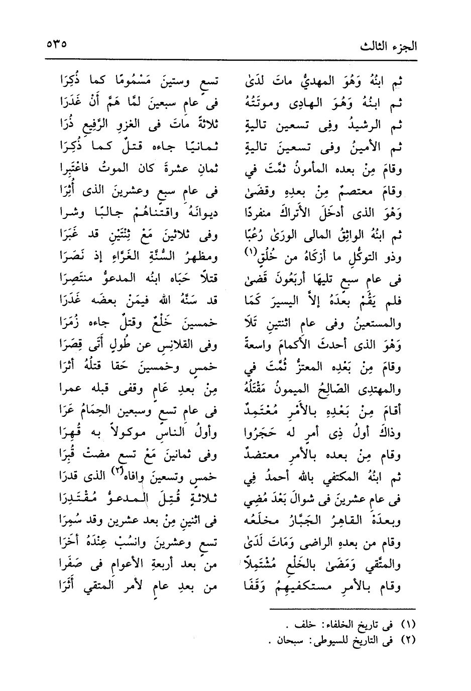 (وَقَامَ من بعدهِ الراضي وَمَاتَ لَدَى ... تسعٍ وعشرينَ وانسُبْ عِنْدَهُ أخَرَا)