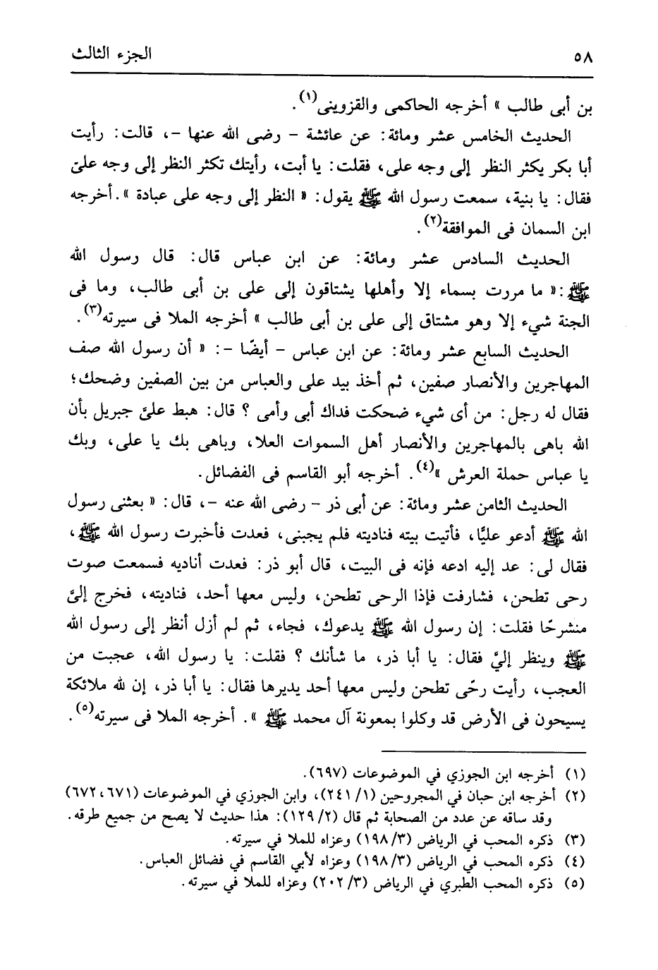 بن أبي طَالب أخرجه الحاكمي والقزويني الحَدِيث الْخَامِس عشر وَمِائَة