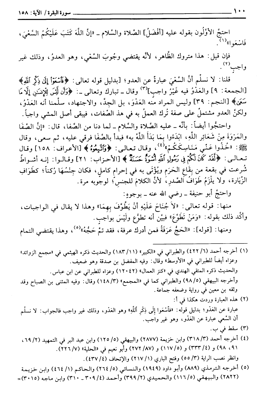 منها: قوله تعالى: {لاَ جُنَاحَ عَلَيْهِ أَنْ يَطَّوَّفَ بِهِمَا} وهذا لا يقال في الواجبات، وأكَّد ذلك بقوله: «وَمَنْ تَطَوَّعَ» فبيَّن أنه تطوُّع ولَيْسَ بواجبٍ.