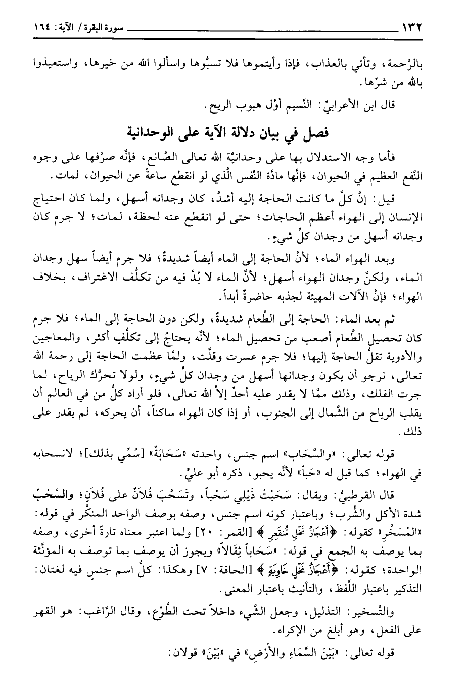 قوله تعالى: «والسَّحَابِ» اسم جنس، واحدته «سَحَابَةٌ» [سُمِّي بذلك] ؛ لانسحابه في الهواء؛ كما قيل له «حَباً» لأنَّه يحبو، ذكره أبو عليٍّ.