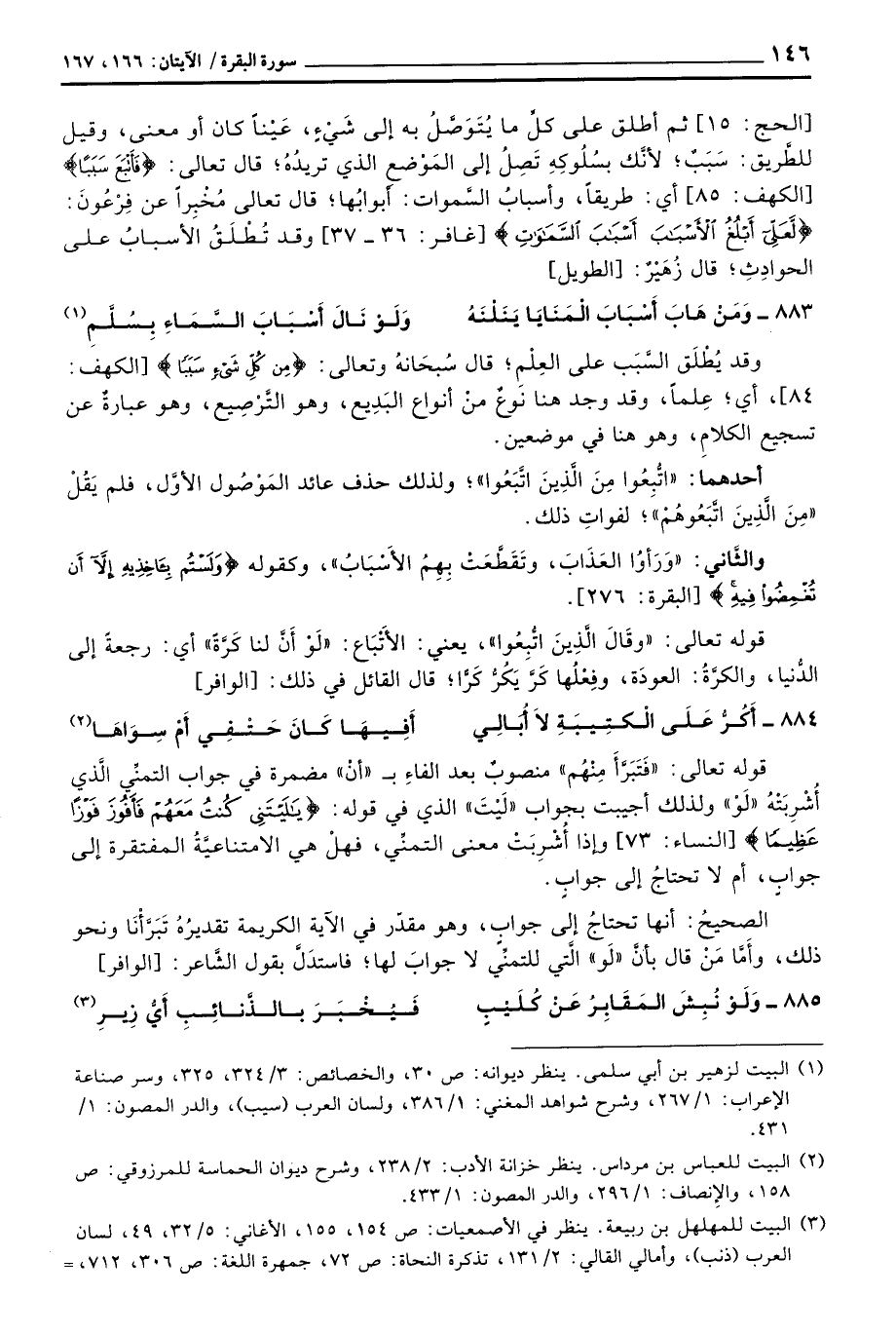 الصحيحُ: أنها تحتاجُ إلى جوابٍ، وهو مقدّر في الآية الكريمة تقديرُهُ تَبَرَّأْنَا ونحو ذلك، وأَمَّا مَنْ قال بأنَّ «لَو» الَّتي للتمنِّي لا جوابَ لها؛ فاستدَلَّ بقول الشَّاعر: [الوافر]