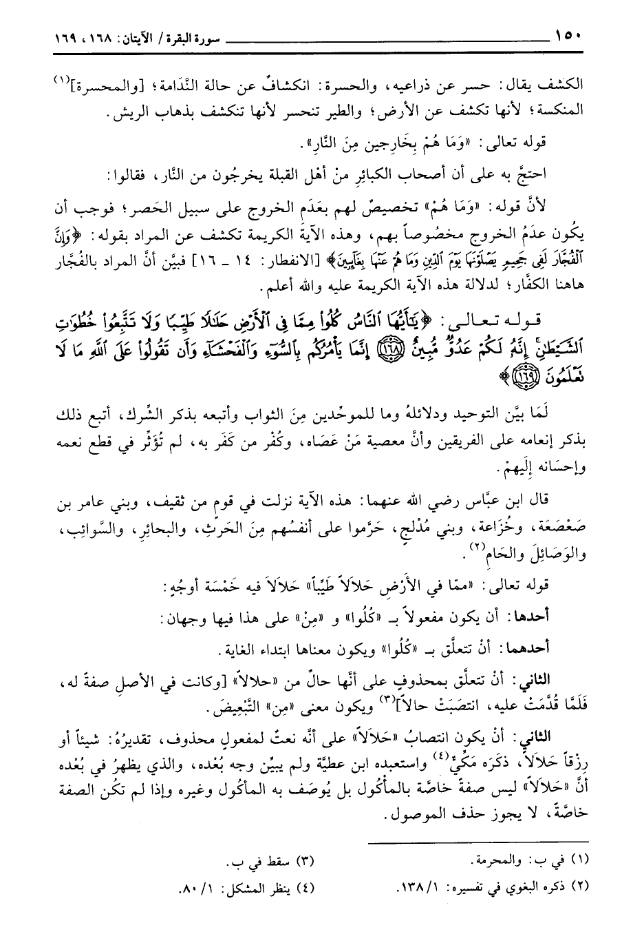 قوله تعالى « {مِمَّا فِي الأرض حَلاَلاً طَيِّباً} حَلالاً فيه خَمْسَة أوجُهٍ: