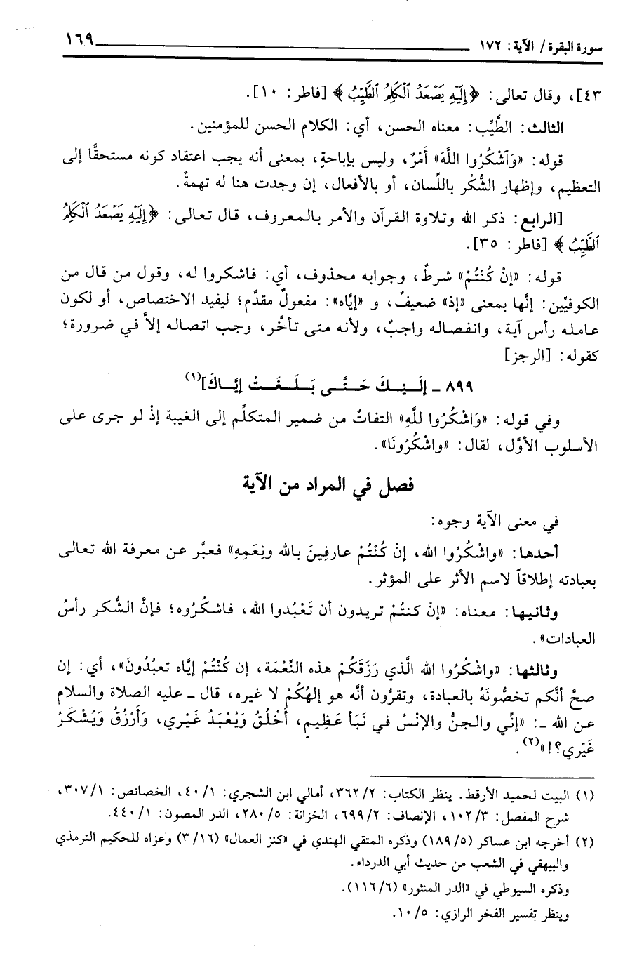 899 - إلَيْكَ حَتَّى بَلَغَتْ إِيَّاكَ ... وفي قوله: {واشكروا للَّهَ} التفاتٌ من ضمير المتكلِّم إلى الغيبة إذْ لو جرى على الأسلوب الأوَّل، لقال: «واشْكُرُونَا» .