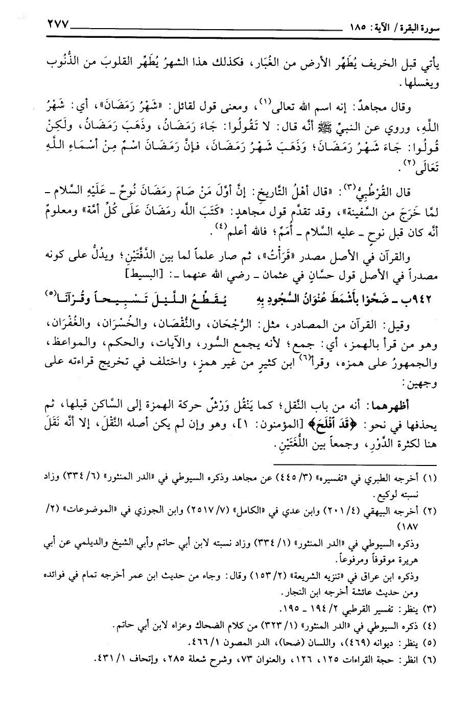 وقيل: القرآن من المصادر، مثل: الرُّجْحَان، والنُّقْصَان، والخُسْرَان، والغُفْرَان، وهو من قرأ بالهمزة، أي: جمع؛ لأنه يجمع السُّور، والآيات، والحكم، والمواعظ، والجمهورُ على همزه، وقرأ ابن كثيرٍ من غير همزٍ، واختلف في تخريج قراءته على وجهين: