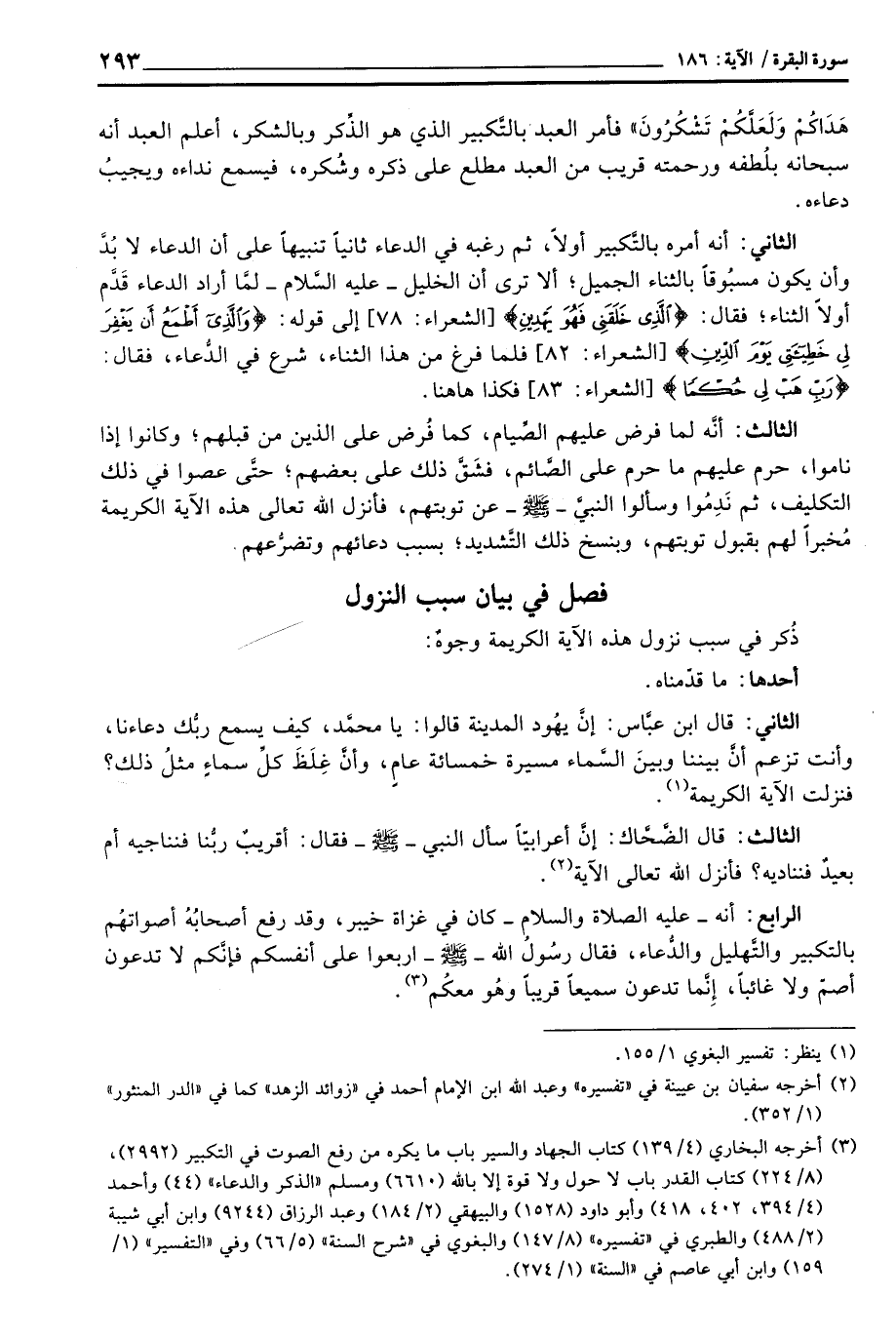 هَدَاكُمْ وَلَعَلَّكُمْ تَشْكُرُونَ} [البقرة: 185] فأمر العبد بالتَّكبير الذي هو الذِّكر وبالشكر، أعلم العبد أنه سبحانه بلُطفه ورحمته قريب من العبد مطلع على ذكره وشُكره، فيسمع نداءه ويجيبُ دعاءه.