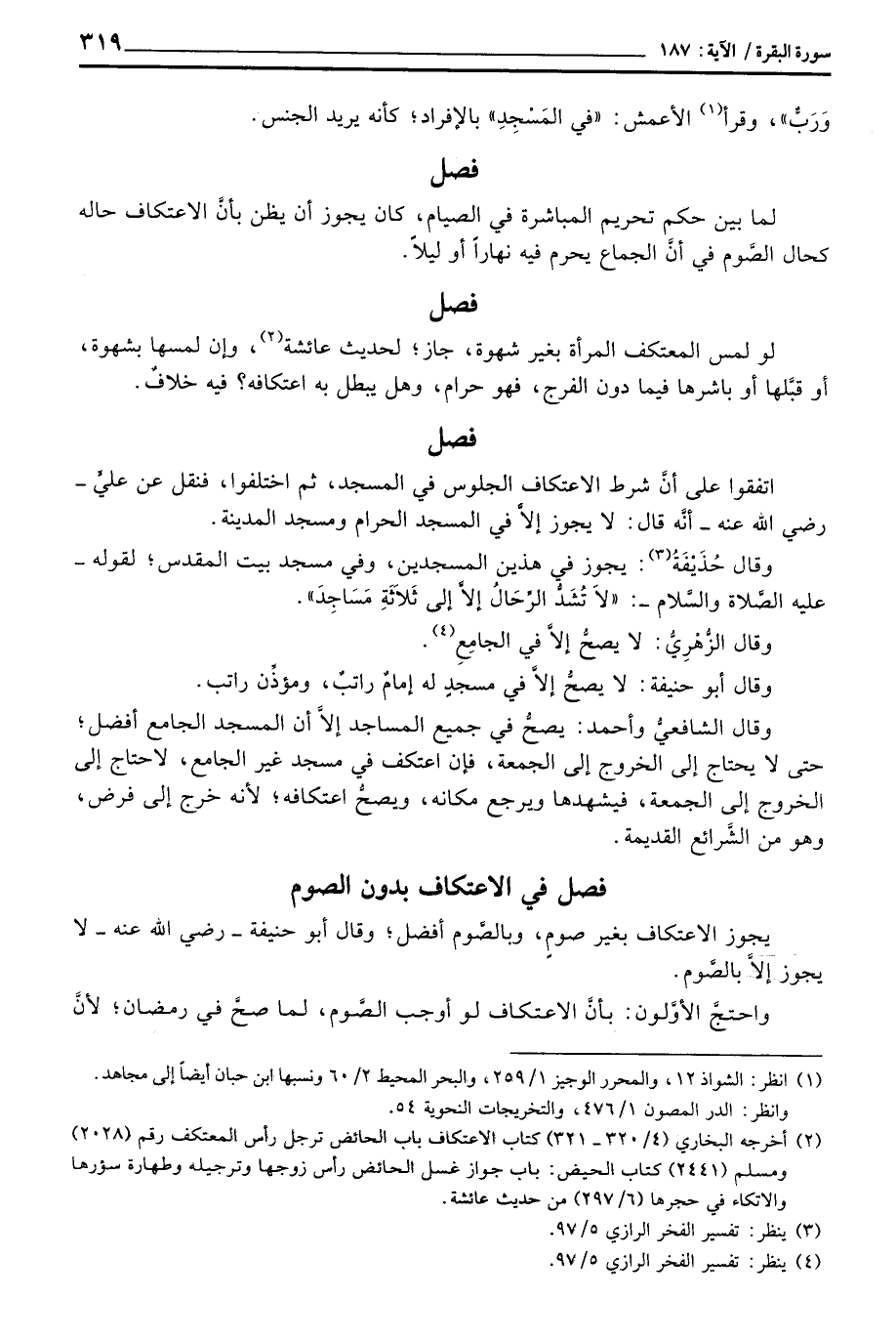 فصل في الاعتكاف بدون الصوم