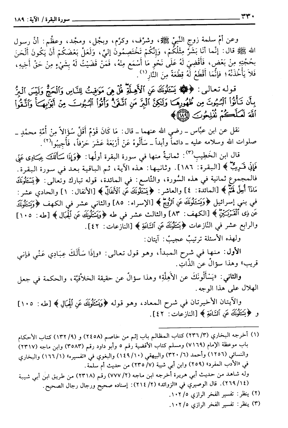 والثاني: {يَسْأَلُونَكَ عَنِ الأهلة} وهذا سؤالٌ عن حقيقة الخلاَّقيَّة، والحكمة في جعل الهلال على هذا الوجه.
