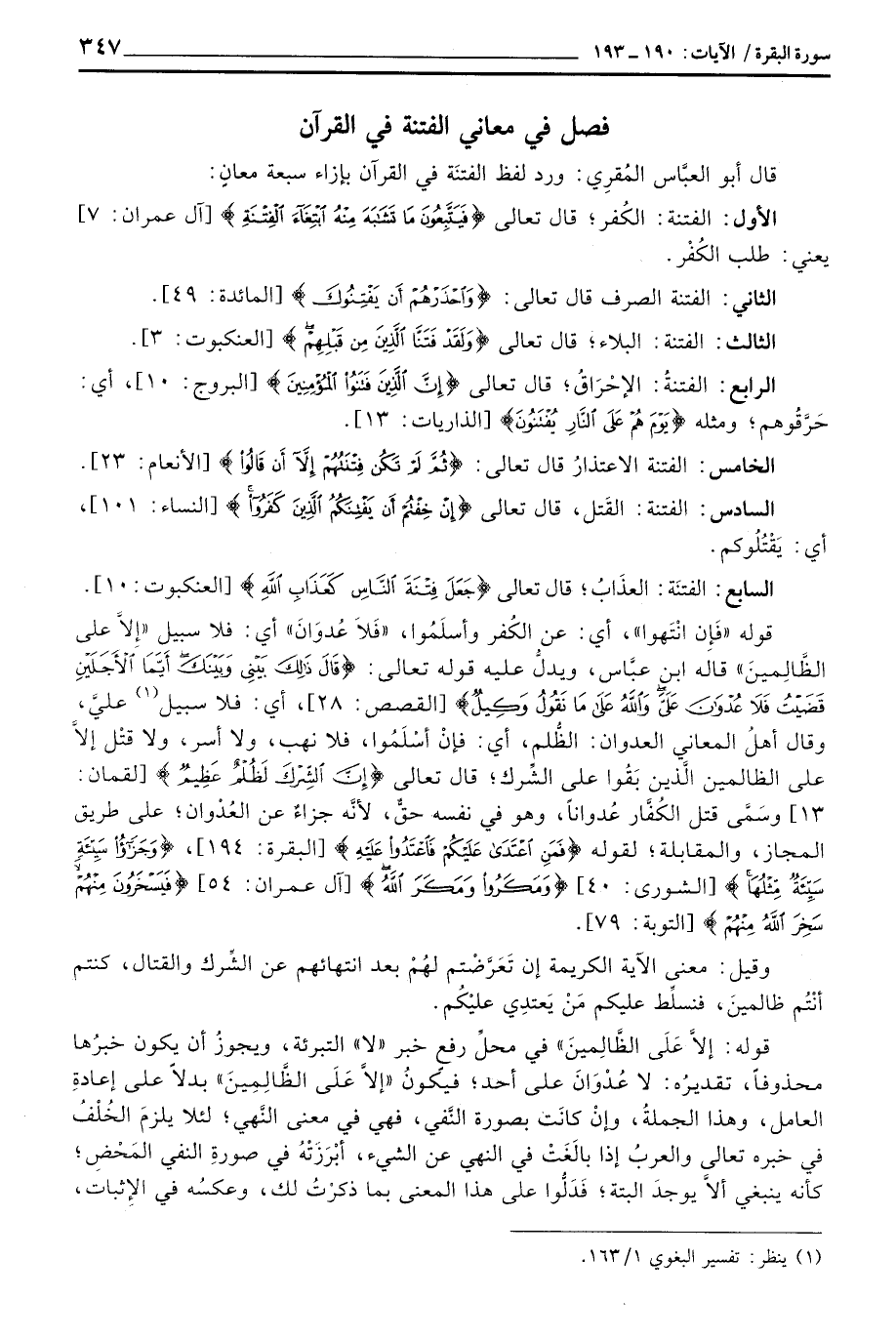 الأول: الفتنة: الكُفر؛ قال تعالى: {فَيَتَّبِعُونَ مَا تَشَابَهَ مِنْهُ ابتغاء الفتنة} [آل عمران: 7] يعني: طلب الكُفْر.