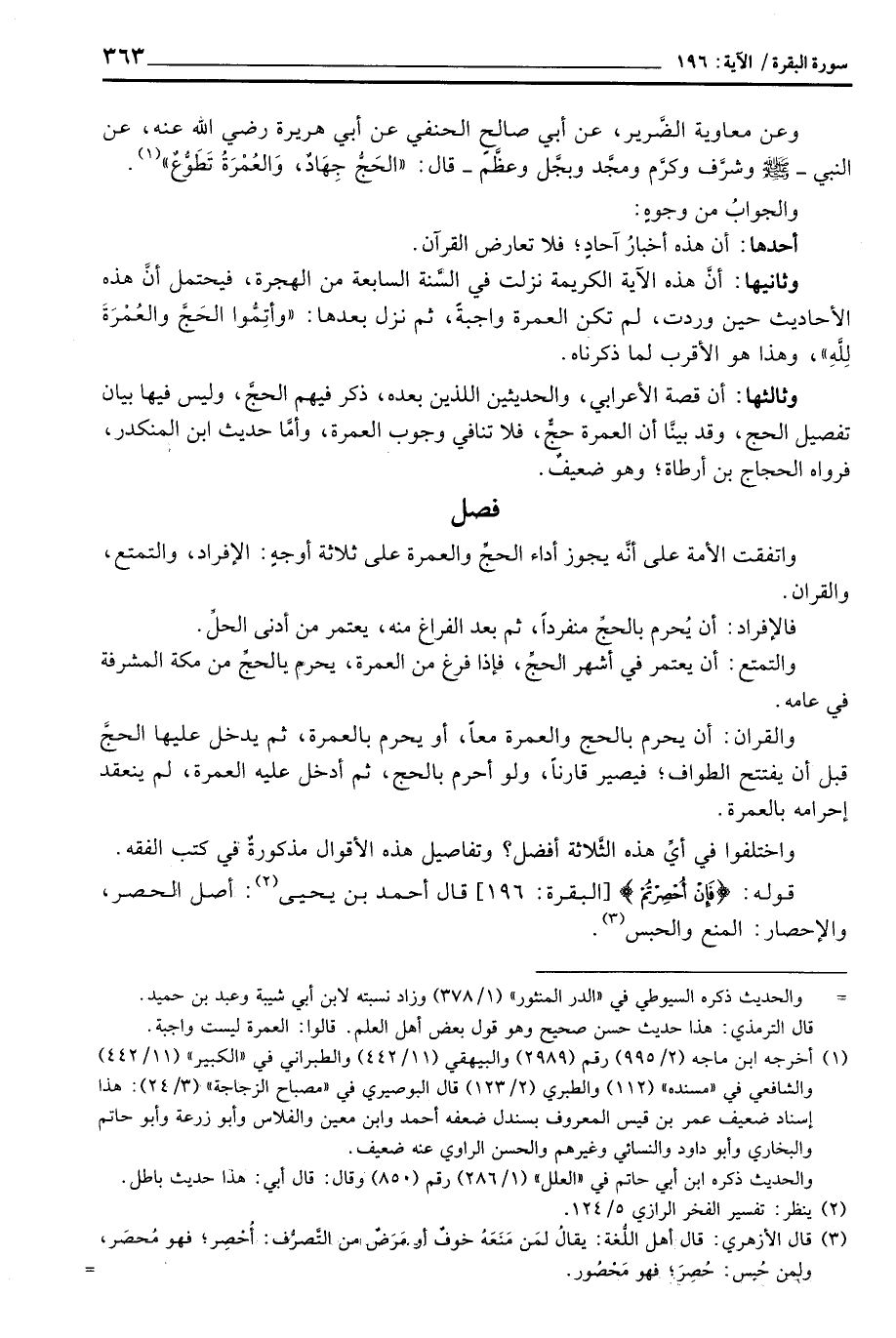 وثانيها: أنَّ هذه الآية الكريمة نزلت في السَّنة السابعة من الهجرة، فيحتمل أنَّ هذه الأحاديث حيث وردت، لم تكن العمرة واجبةً، ثم نزل بعدها: {وَأَتِمُّواْ الحج والعمرة للَّهِ} ، وهذا هو الأقرب لما ذكرناه.