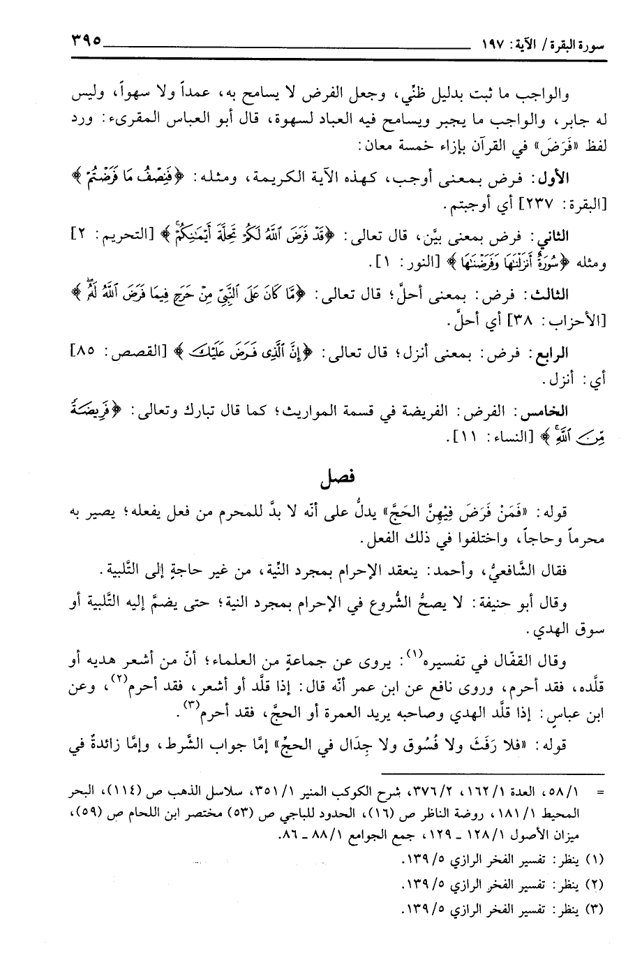 والواجب ما ثبت بدليل ظنِّي، وجعل الفرض لا يسامح به، عمداً ولا سهواً، وليس له جابر، والواجب ما يجبر ويسامح فيه العباد لسهوة، قال أبو العباس المقرىء: ورد لفظ «فَرَضَ» في القرآن خمسة معان: الأول: فرض بمعنى أوجب، كهذه الآية الكريمة، ومثله: {فَنِصْفُ مَا فَرَضْتُمْ} [البقرة: 237] أي أوجبتم.