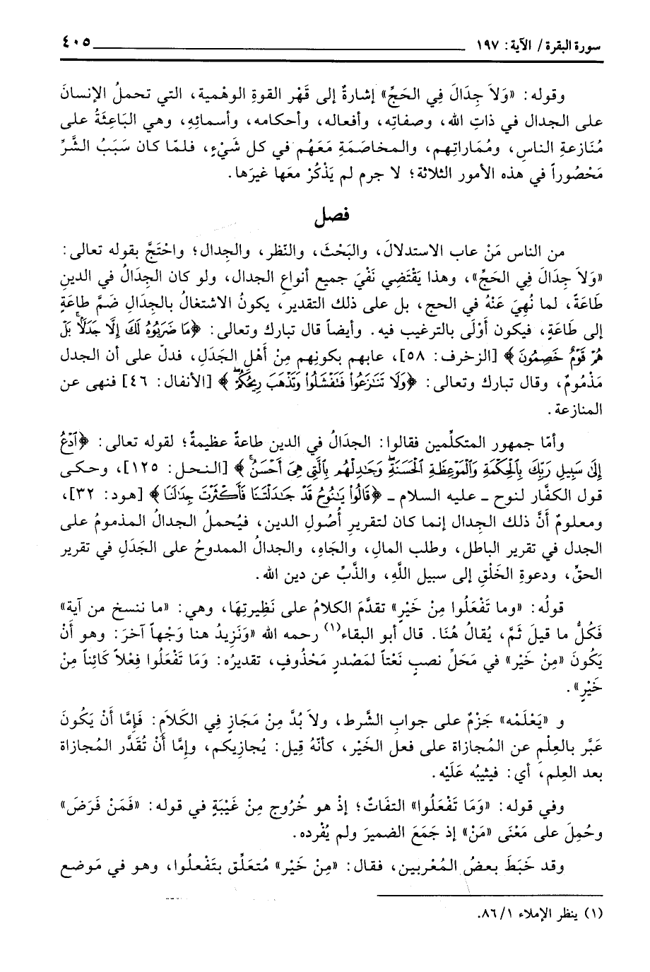 من الناس مَنْ عاب الاستدلالَ، والبَحْثَ، والنَّظر، والجِدال؛ واحْتَجَّ بقوله تعالى: {وَلاَ جِدَالَ فِي الحج} ، وهذا يَقْتَضِي نَفْيَ جميع أنواعِ الجدال، ولو كان الجِدَالُ في الدين طَاعَةٌ، لما نُهِيَ عَنْهُ في الحج، بل على ذلك التقدير، يكونُ الاشتغالُ بالجِدَالِ ضَمَّ طاعَةٍ إلى طَاعَةٍ، فيكون أَوْلَى بالترغيب فيه. وأيضاً قال تبارك وتعالى: {مَا ضَرَبُوهُ لَكَ إِلاَّ جَدَلاَ بَلْ هُمْ قَوْمٌ خَصِمُونَ} [الزخرف: 58] ، عابهم بكونِهم مِنْ أَهْل الجَدَلِ، فدلّ على الجدل مَذْمُومٌ، وقال تبارك وتعالى: {وَلاَ تَنَازَعُواْ فَتَفْشَلُواْ وَتَذْهَبَ رِيحُكُمْ} [الأنفال: 46] فنهى عن المنازعة.