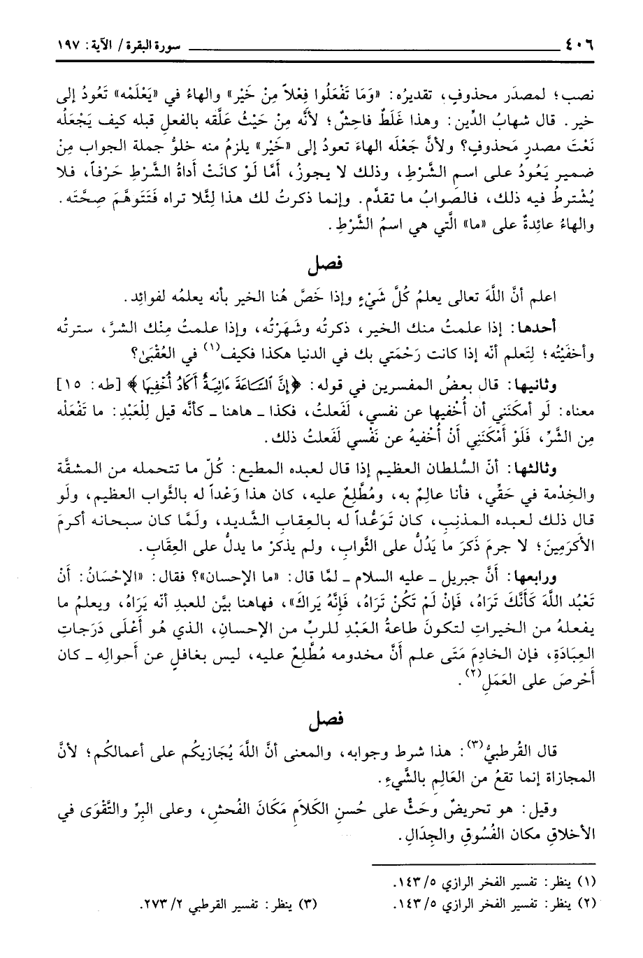 ورابعها: أَنَّ جبريل - عليه السلام - لمَّا قال:» ما الإحسان «؟ فقال:» الإحْسَانُ: أَنْ تَعْبُد اللَّهُ كَأنَّكَ تَرَاهُ، فَإِنْ لَمْ تَكُنْ تَرَاهُ، فَإِنَّهُ يَرَاكَ «، فهاهنا بيَّن للعبدِ أنَّه يَرَاهُ، ويعلمُ ما يفعلهُ من الخيراتِ لتكون طاعةُ العَبْدِ للربِّ من الإحسانِ، الذي هُو أَعْلَى دَرَجاتِ العِبَادِةِ، فإن الخادِمَ مَتَى علم أَنَّ مخدومه مُطَّلِعٌ عليه، ليس بغافلٍ عن أَحوالِهِ - كان أَحْرصَ على العَمَلِ.