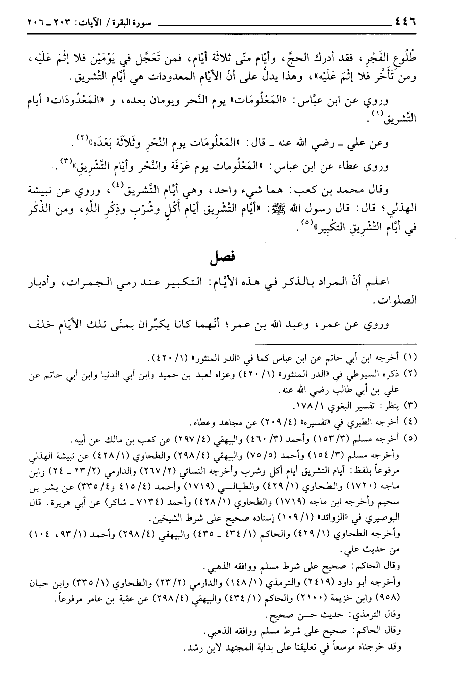 وقال محمد بن كعب: هما شيء واحد، وهي أيَّام التَّشريق، وروي عن نبيشة الهذلي؛ قال: قال رسول الله صَلَّى اللَّهُ عَلَيْهِ وَسَلَّم َ:» أيَّام التَّشْرِيق أيّام أَكْلِ وشُرْبٍ وذِكْرِ اللَّهِ، ومن الذِّكْر في أيَّام التَّشْرِيقِ التكْبِير «