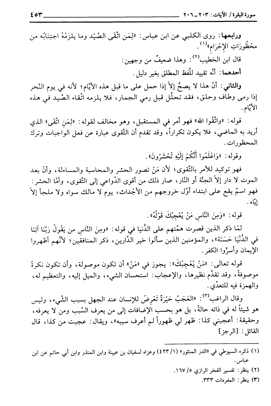 ورابعها: روى الكلبي عن ابن عباس: «لِمَن اتَّقَى الصَّيْد ما يلزَمُهُ اجتِنَابُه من محْظُورَاتِ الإِحْرَامِ» .