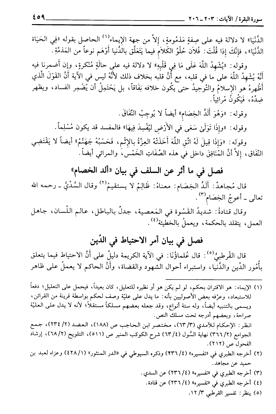 فصل في ما أثر عن السلف في بيان» ألد الخصام «