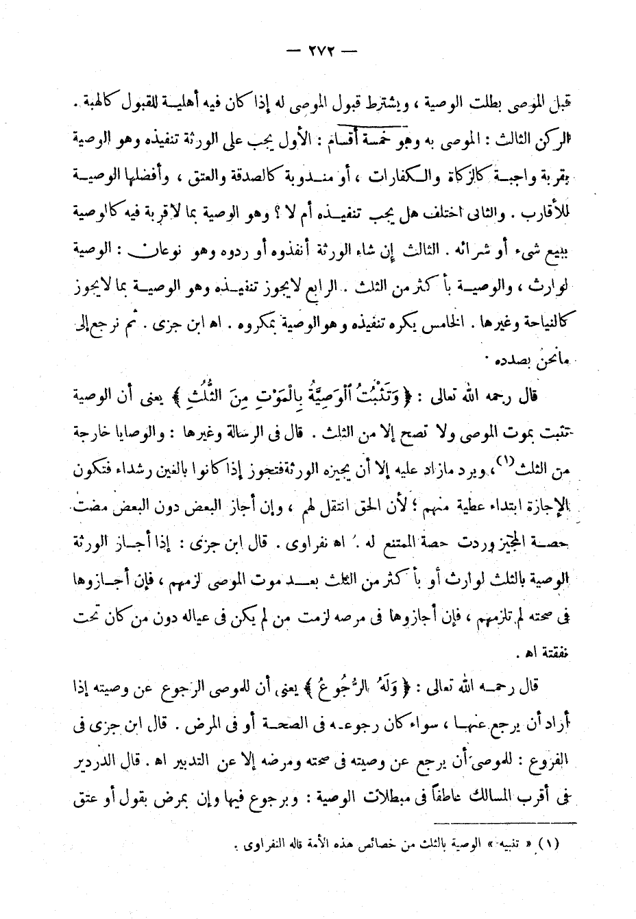 (¬1) تنبيه) الوصية بالثلث من خصائص هذه الأمة، قاله النفراوي.