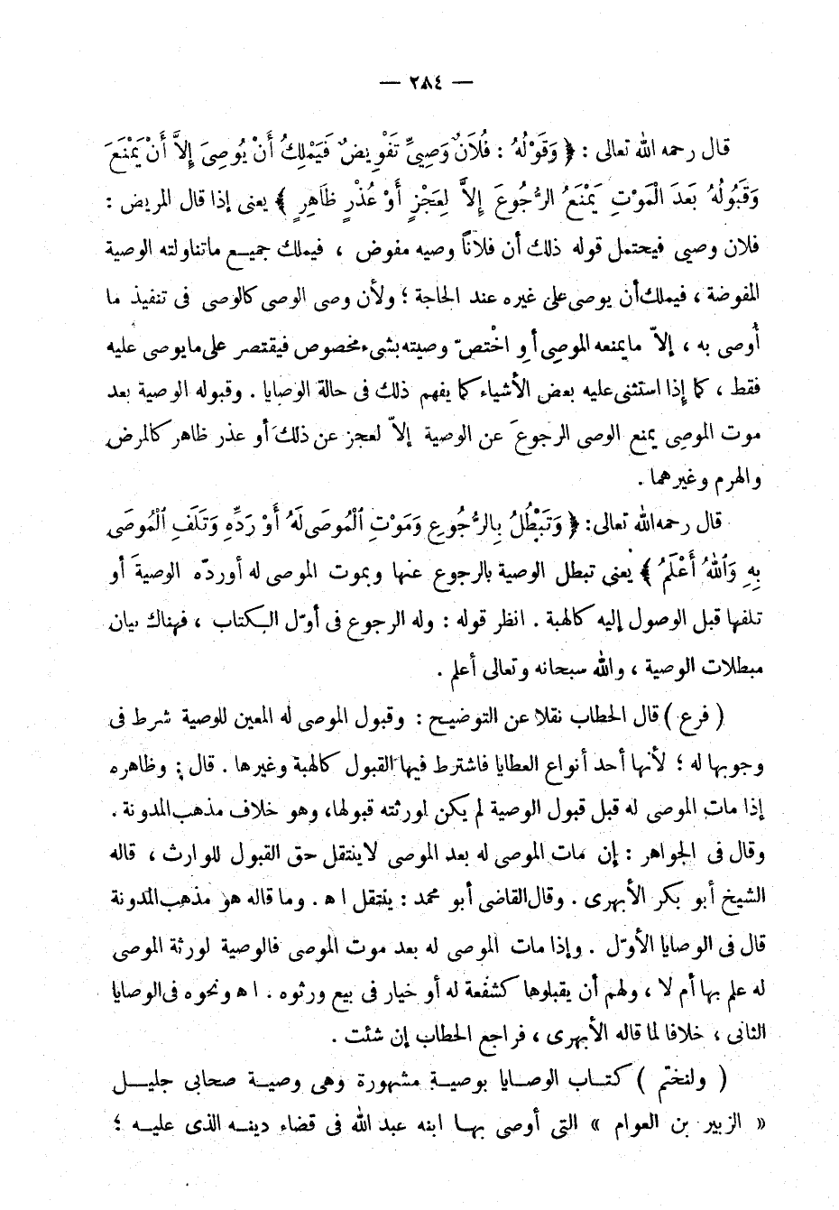 ولنختم: كتاب الوصايا بوصية مشهورة وهي وصية صحابي جليل (الزبير بن العوام) التي أوصى بها ابنه عبد الله في قضاء دينه الذي عليه،