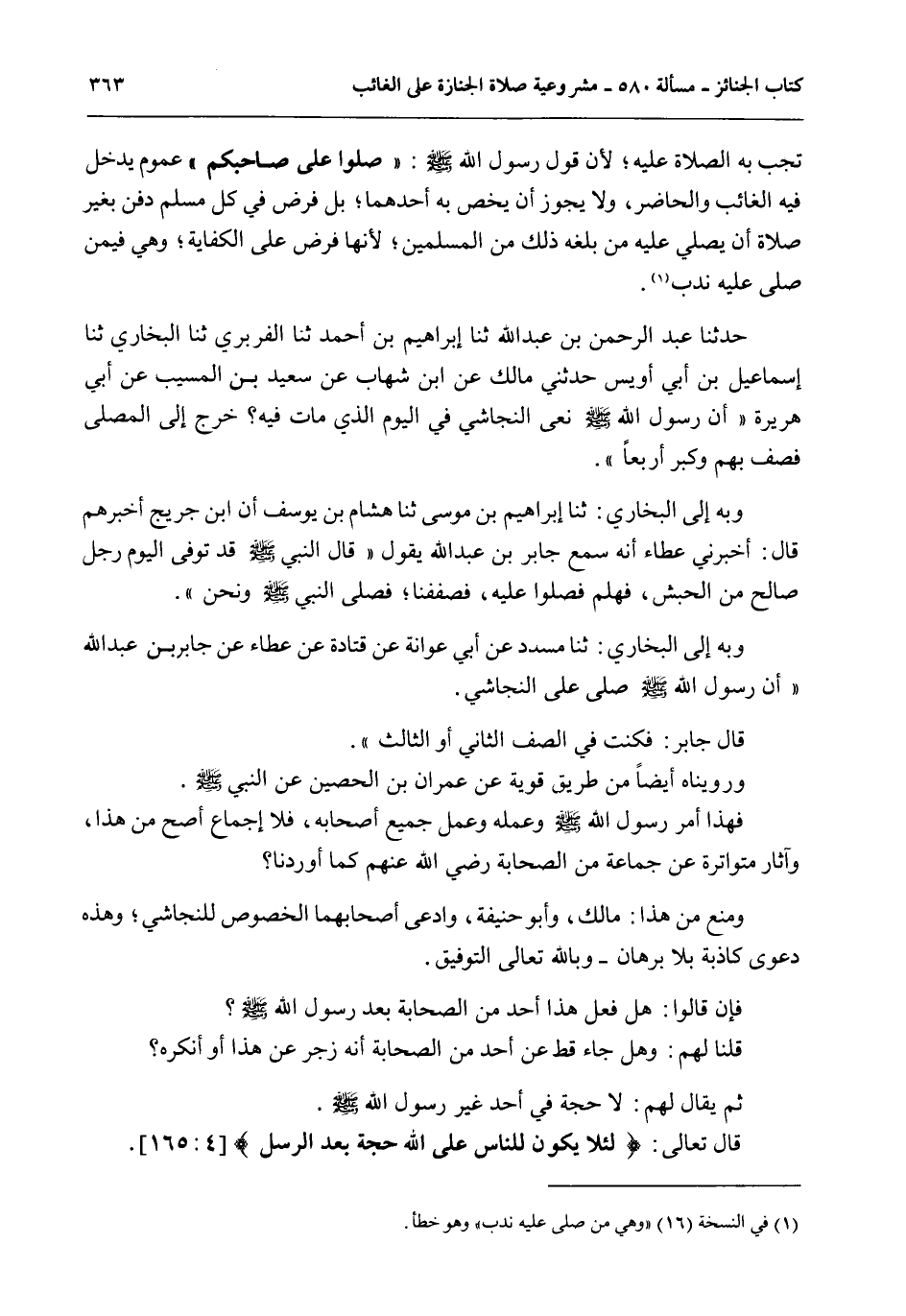 وَمَنَعَ مِنْ هَذَا: مَالِكٌ، وَأَبُو حَنِيفَةَ، وَادَّعَى أَصْحَابُهُمَا الْخُصُوصَ لِلنَّجَاشِيِّ، وَهَذِهِ دَعْوَى كَاذِبَةٌ بِلَا بُرْهَانٍ - وَبِاَللَّهِ تَعَالَى التَّوْفِيقُ.