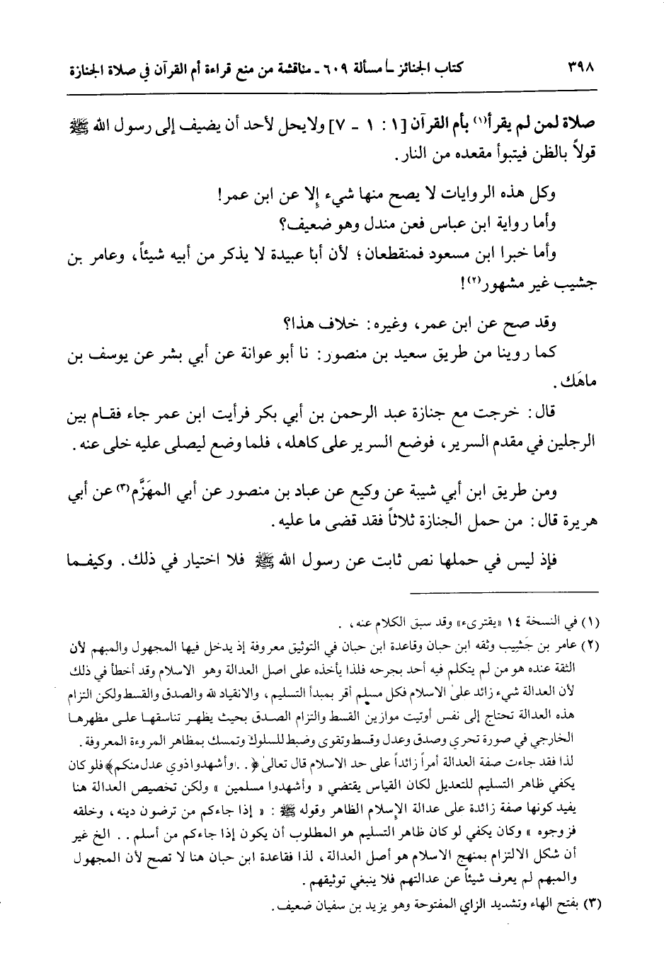 صَلَاةَ لِمَنْ لَمْ يَقْرَأْ بِأُمِّ الْقُرْآنِ» وَلَا يَحِلُّ لِأَحَدٍ أَنْ يُضِيفَ إلَى رَسُولِ اللَّهِ - صَلَّى اللَّهُ عَلَيْهِ وَسَلَّمَ - قَوْلًا بِالظَّنِّ فَيَتَبَوَّأَ مَقْعَدَهُ مِنْ النَّارِ.