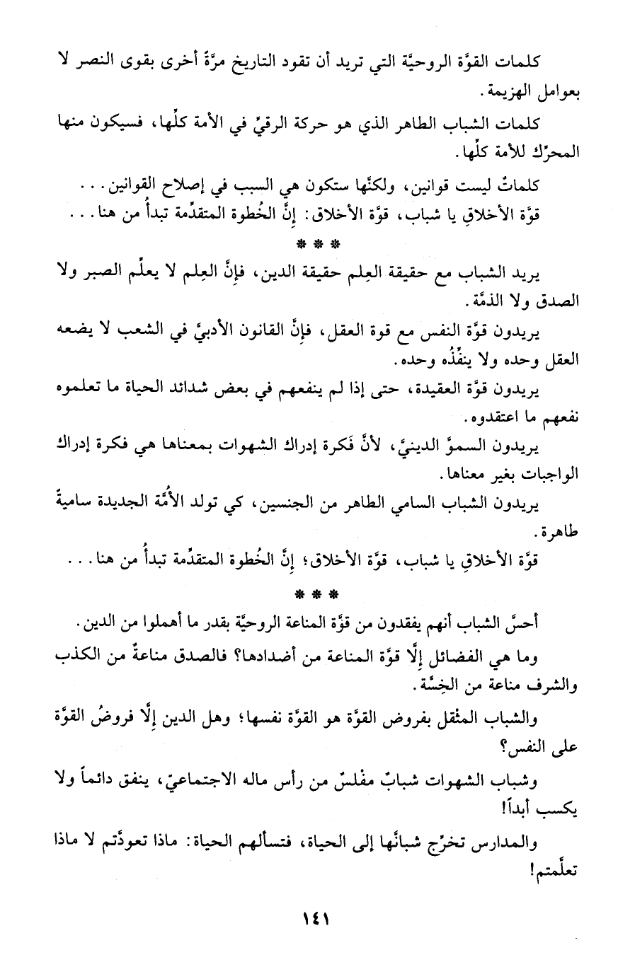 كلمات الشباب الطاهر الذي هو حركة الرقي في الأمة كلها، فسيكون منها المحرك للأمة كلها.