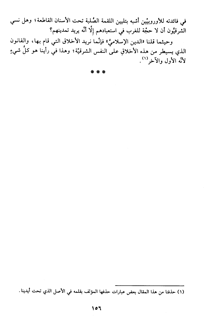 في فائدته للأوروبيين أشبه بتليين اللقمة الصلبة تحت الأسنان القاطعة؛ وهل نسي الشرقيون أن لا حجة للغرب في استبعادهم إلا أنه يريد تمدينهم؟