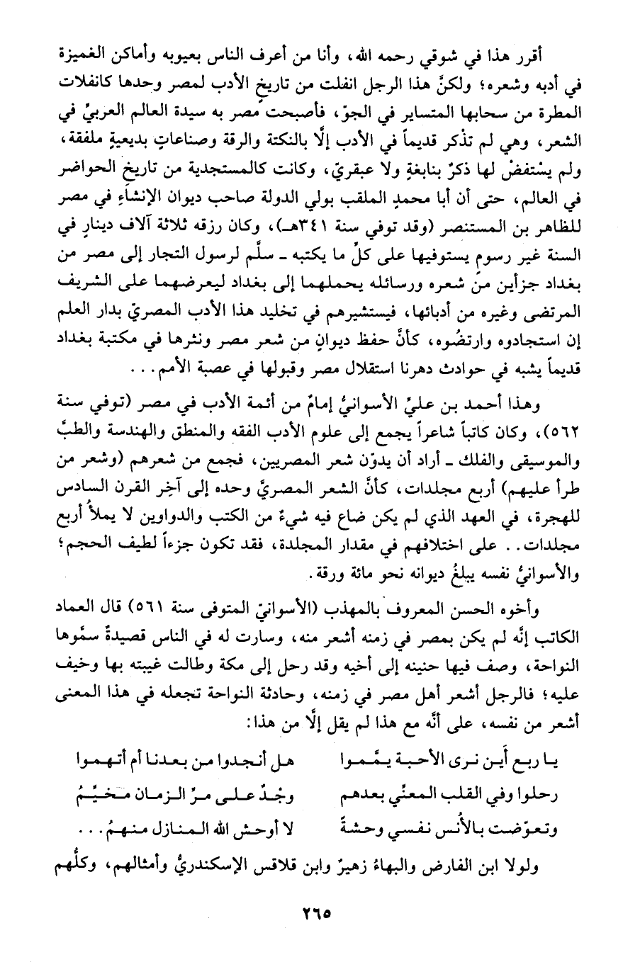 ولولا ابن الفارض والبهاء زهير وابن قلاقس الإسكندري وأمثالهم، وكلهم