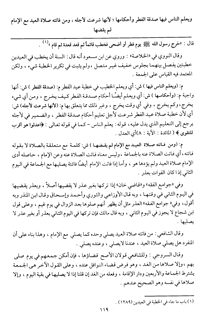 ـــــــــــــــــــــــــــــQقال: «خرج رسول الله - صَلَّى اللَّهُ عَلَيْهِ وَسَلَّمَ - يوم فطر أو أضحى فخطب قائما ثم قعد قعدة ثم قام» .
