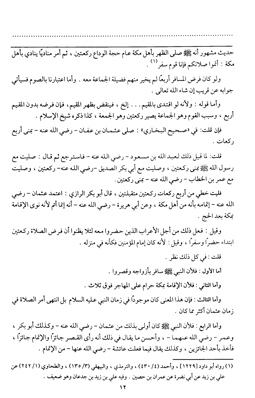 ـــــــــــــــــــــــــــــQحديث مشهور «أنه - صَلَّى اللَّهُ عَلَيْهِ وَسَلَّمَ - صلى الظهر بأهل مكة عام حجة الوداع ركعتين، ثم أمر مناديا ينادي بأهل مكة: أتموا صلاتكم فإنا قوم سفر» .