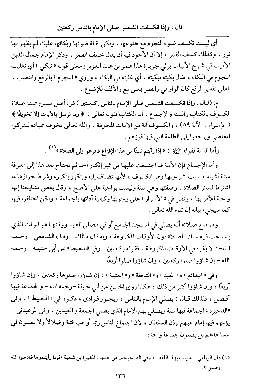 قال: وإذا انكسفت الشمس صلى الإمام بالناس ركعتين