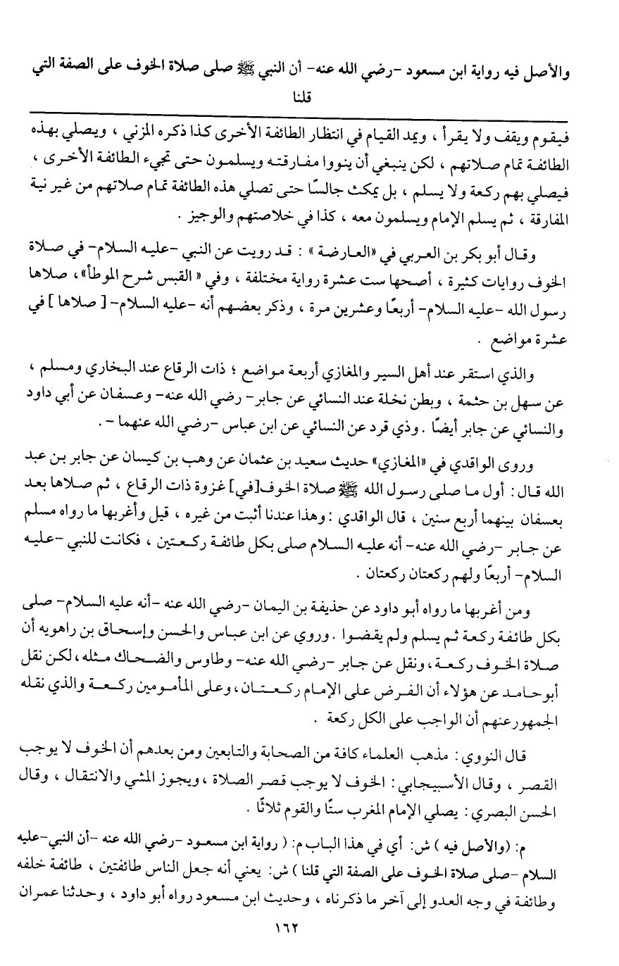 والأصل فيه رواية ابن مسعود - رَضِيَ اللَّهُ عَنْهُ - أن النبي - صَلَّى اللَّهُ عَلَيْهِ وَسَلَّمَ - صلى صلاة الخوف على الصفة التي قلنا