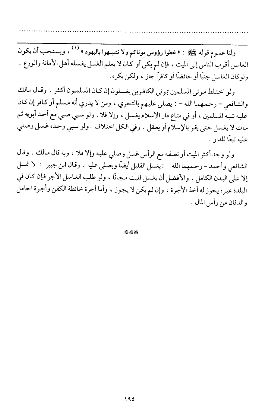 ولو اختلط موتى المسلمين بموتى الكافرين يغسلون إن كان المسلمون أكثر. وقال مالك والشافعي - رحمهما الله -: يصلى عليهم بالتحري، ومن لا يدري أنه مسلم أوكافر إن كان عليه شبه المسلمين، أو في متاع دار الإسلام يغسل، وإلا فلا. ولو سبي صبي مع أحد أبويه ثم مات لا يغسل حتى يقر بالإسلام أو يعقل. وفي الكل اختلاف. ولو سبي وحده غسل وصلي عليه تبعا للدار.